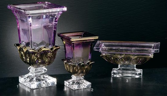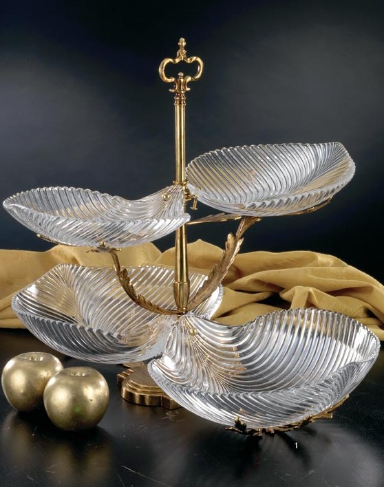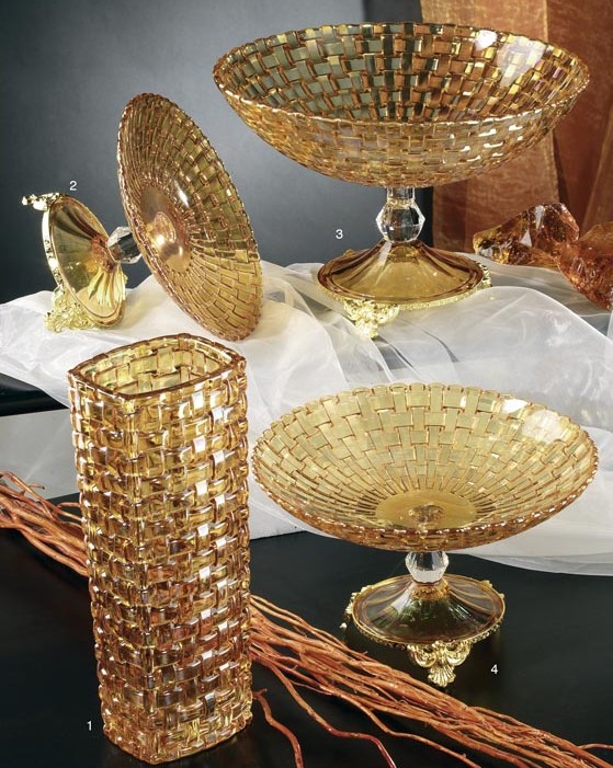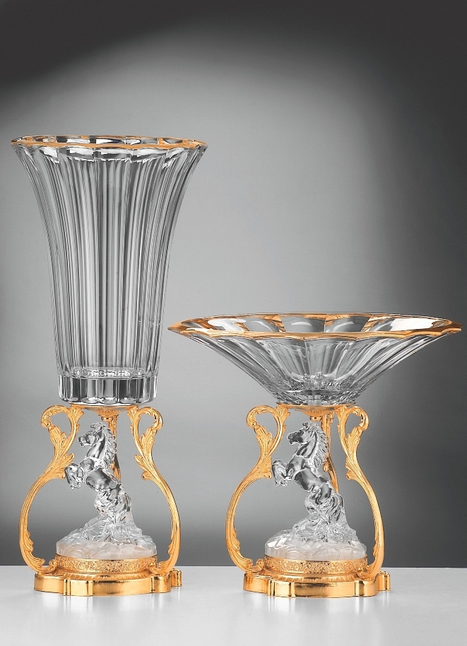 Crystalware production consists of crystal articles for the house and the table,hand-cut by master craftsmen and enriched with decorations in 24k. gold. The metal mounting on all the objects is in tarnish-proof gold-plated (24 karats) or silver-plated brass. The quality and broad range of articles produced are appreciated by the most prestigious clientele world-wide.